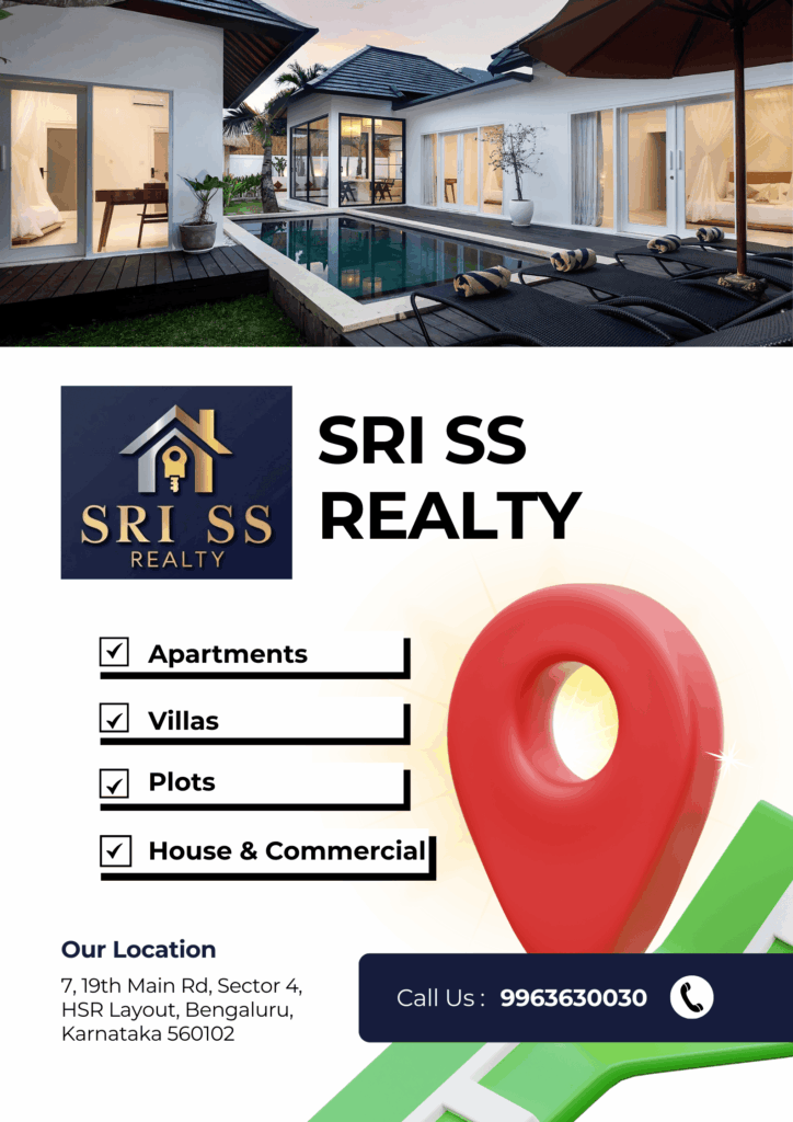 At Sri SS Realty, we are committed to helping you find the perfect property that meets your lifestyle, investment, and business aspirations. With years of experience in the real estate sector, we offer a wide range of verified residential and commercial properties, including houses, apartments, villas, and office spaces. Our focus is on providing transparent, hassle-free services backed by expert guidance, strategic location choices, and thorough documentation checks. Whether you’re a first-time homebuyer, a seasoned investor, or a business owner looking for the right space, we are dedicated to making your property journey seamless, secure, and rewarding. With Sri SS Realty, you’re not just purchasing a property—you’re investing in a better future.